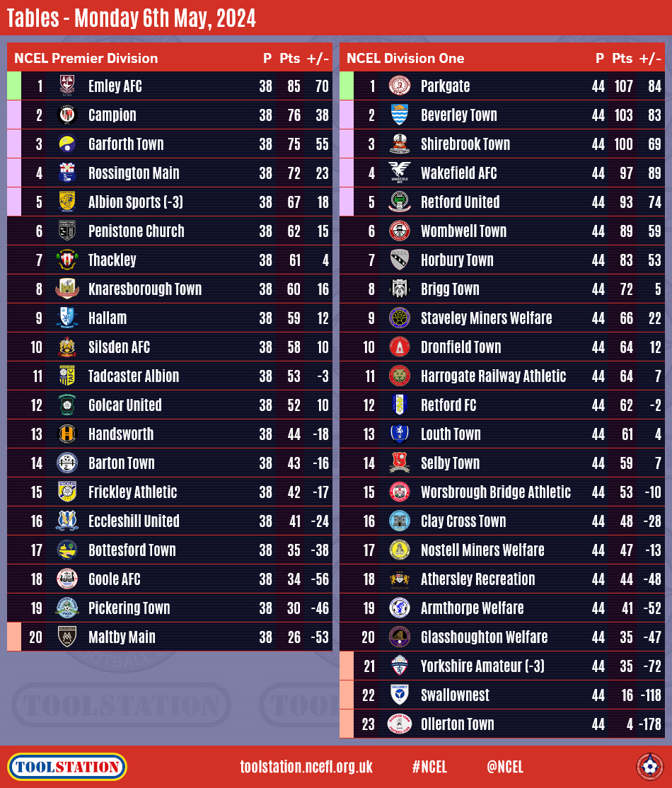 P | 1 | Emley AFC | 38 | 85 | 70 |