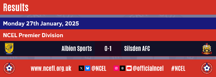 Silsden AFC have extended their lead at the top of the NCEL Premier Division to twelve points as they made it seventeen unbeaten games in a row with their 1-0 win at neighbours Albion Sports on Monday.Casey Stewart struck the only goal of the game midway through the first half to keep the momentum going on what is currently a seemingly unstoppable charge to the title by the Cobbydalers but there is still plenty of time for others to mount a challenge.