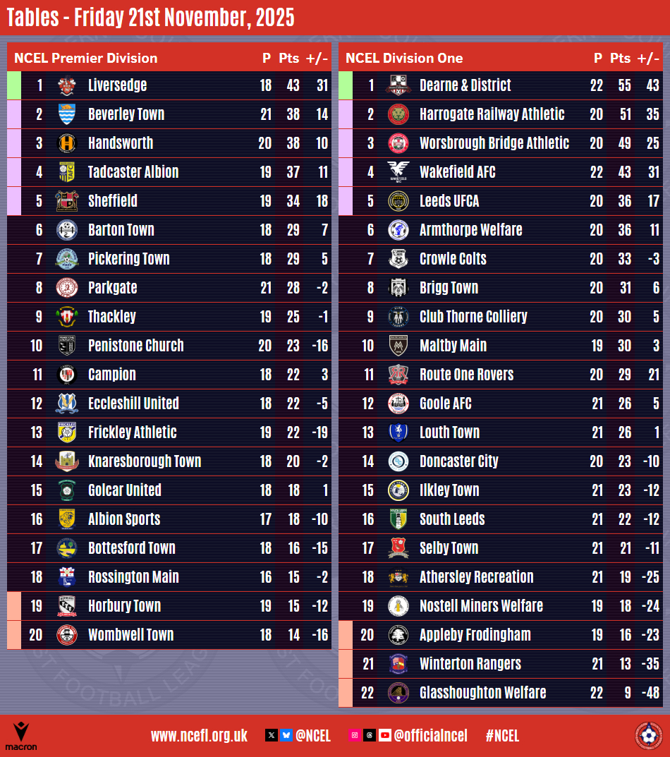 Penistone Church, Luke Suluburic with their equaliser after Jordan Coduri had given the hosts a first half lead, Danny Forrest's side have a commanding advantage in the standings as they reach the halfway point of their season.