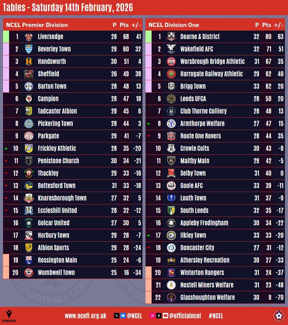Ilkley move up to seventeenth, now nine points clear of danger, whilst Brigg keep a twelve-point gap between themselves and the side just outside the play-off zone,