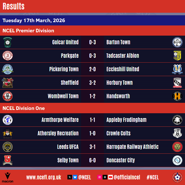 Club Thorne Colliery remain in the hunt too, a 2-1 win at