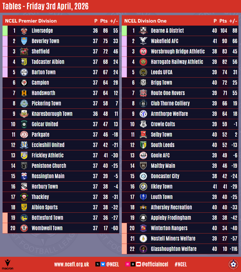A dramatic final day for all but two sides in the Macron NCEL Premier Division on Saturday saw Albion Sports end the campaign in the relegation zone whilst Barton Town confirmed the final spot in the promotion play-offs.Bottesford Town began the day in the bottom two and knew only a win at home to second-placed