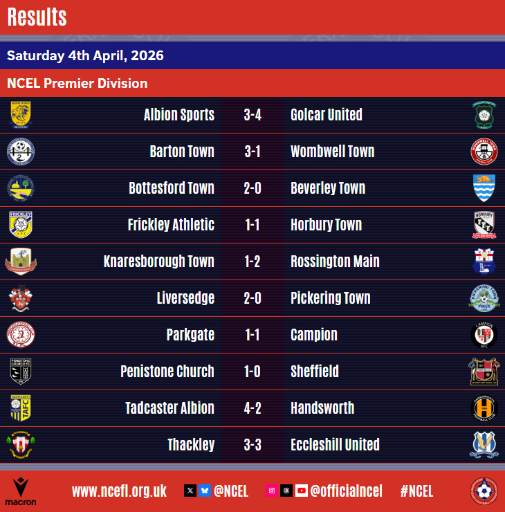 Ashley Flynn levelled matters once more and it looked as though a point in a 3-3 draw would be enough for Sports before the news came through of Thackley's equaliser that put them in peril and then they conceded the fourth from Kallum Reed to confirm their sad fate.
